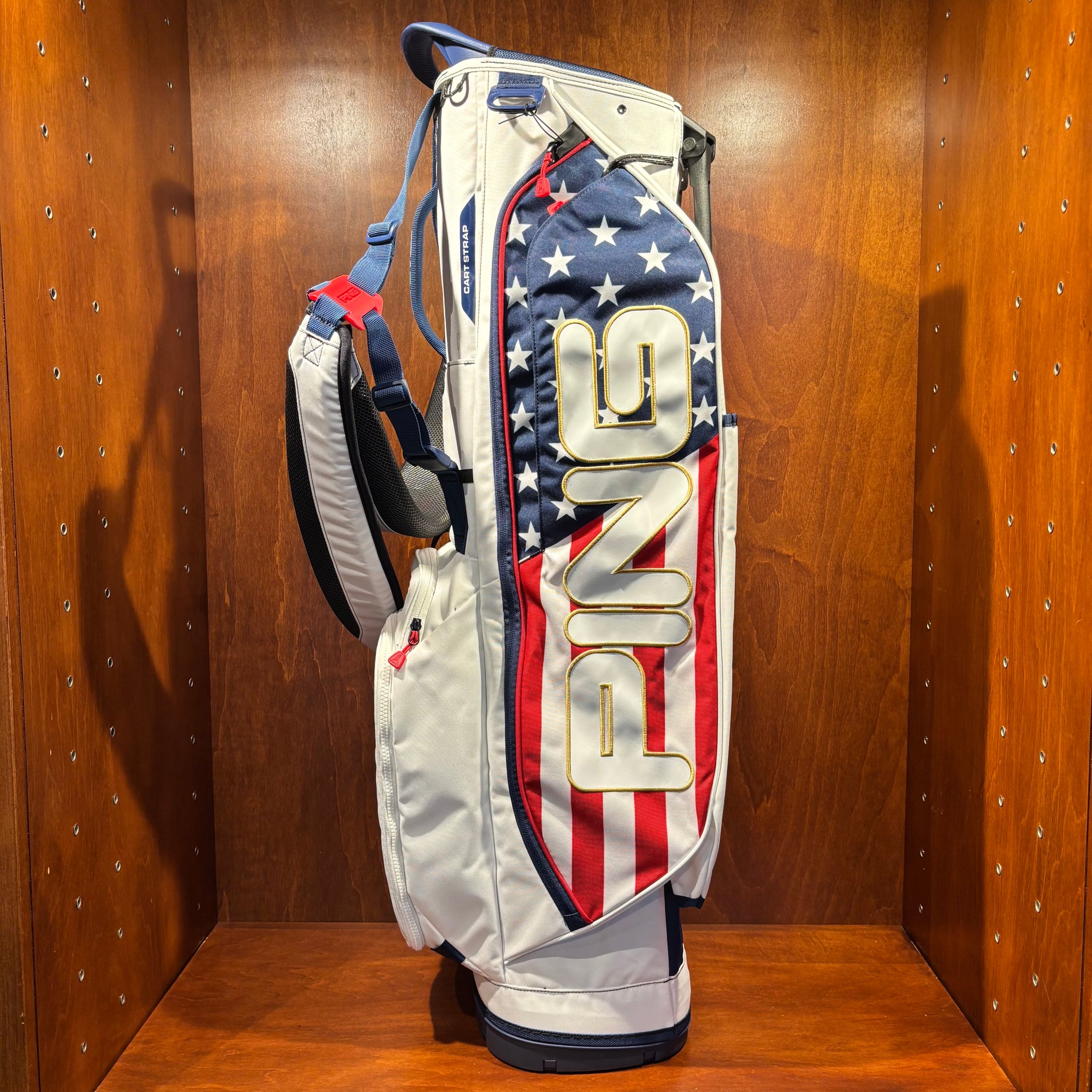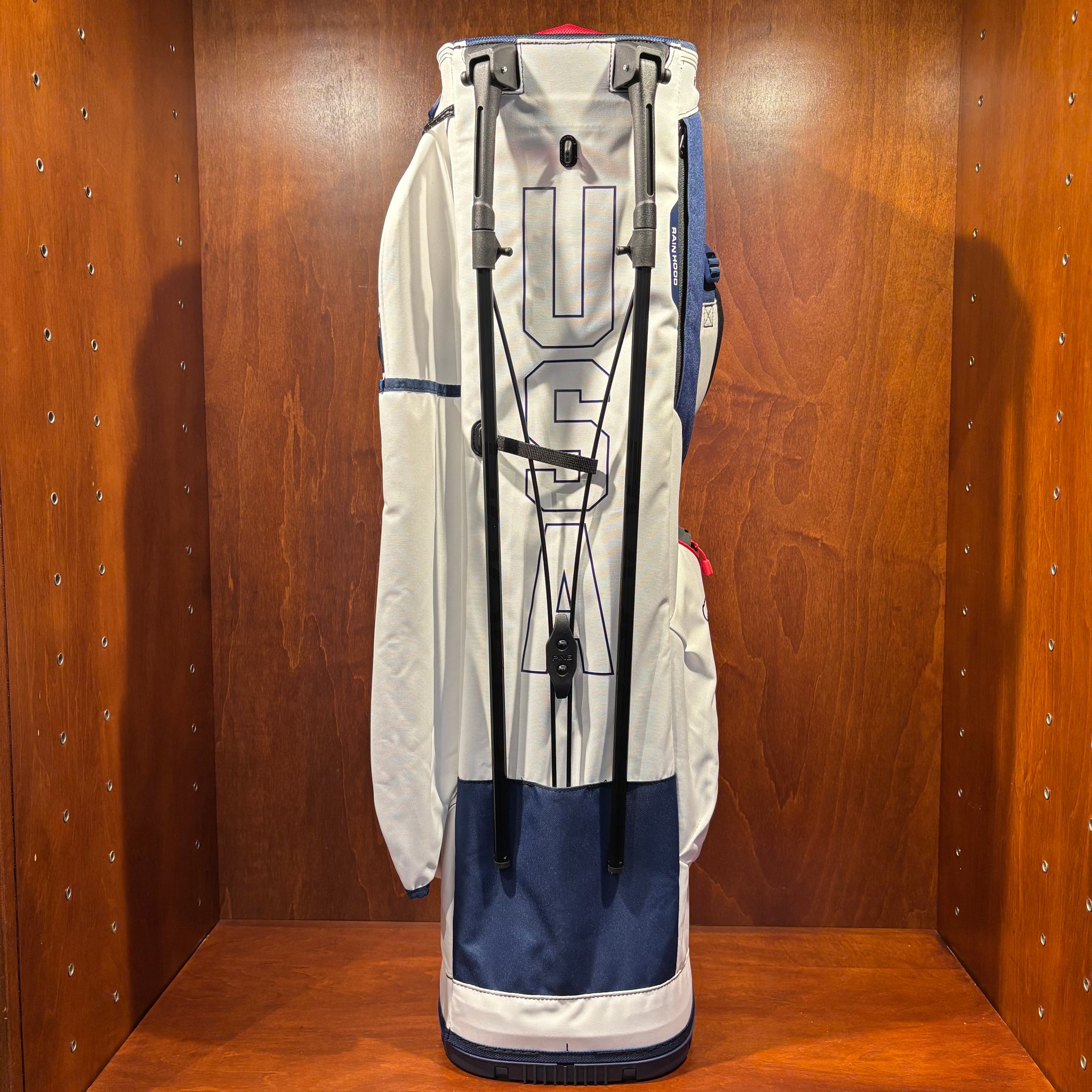 The PING HOOFER-LITE boasts a stacked pocket configuration for easier access and a large ball pocket among nine altogether. A four-way top is reconfigured to optimize organization and handling. It also features an innovative bottom that improves club removal by guiding clubs to the correct segment and keeping clubs separated while carrying.