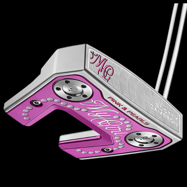 Like a Hollywood star premiering on the red carpet, this year’s limited release Scotty Cameron My Girl “Pink & Pearls” putter ushers in a prototype 34-inch Phantom 5 design that demonstrates how a drop-dead gorgeous putter can also be a precision-milled masterpiece. The Pink & Pearls theme carries through every aspect of Scotty’s 24th unveiling of this very special model, a compact mallet crafted from solid 303 stainless steel and 6061 aircraft grade aluminum as a one-of-kind showstopper.