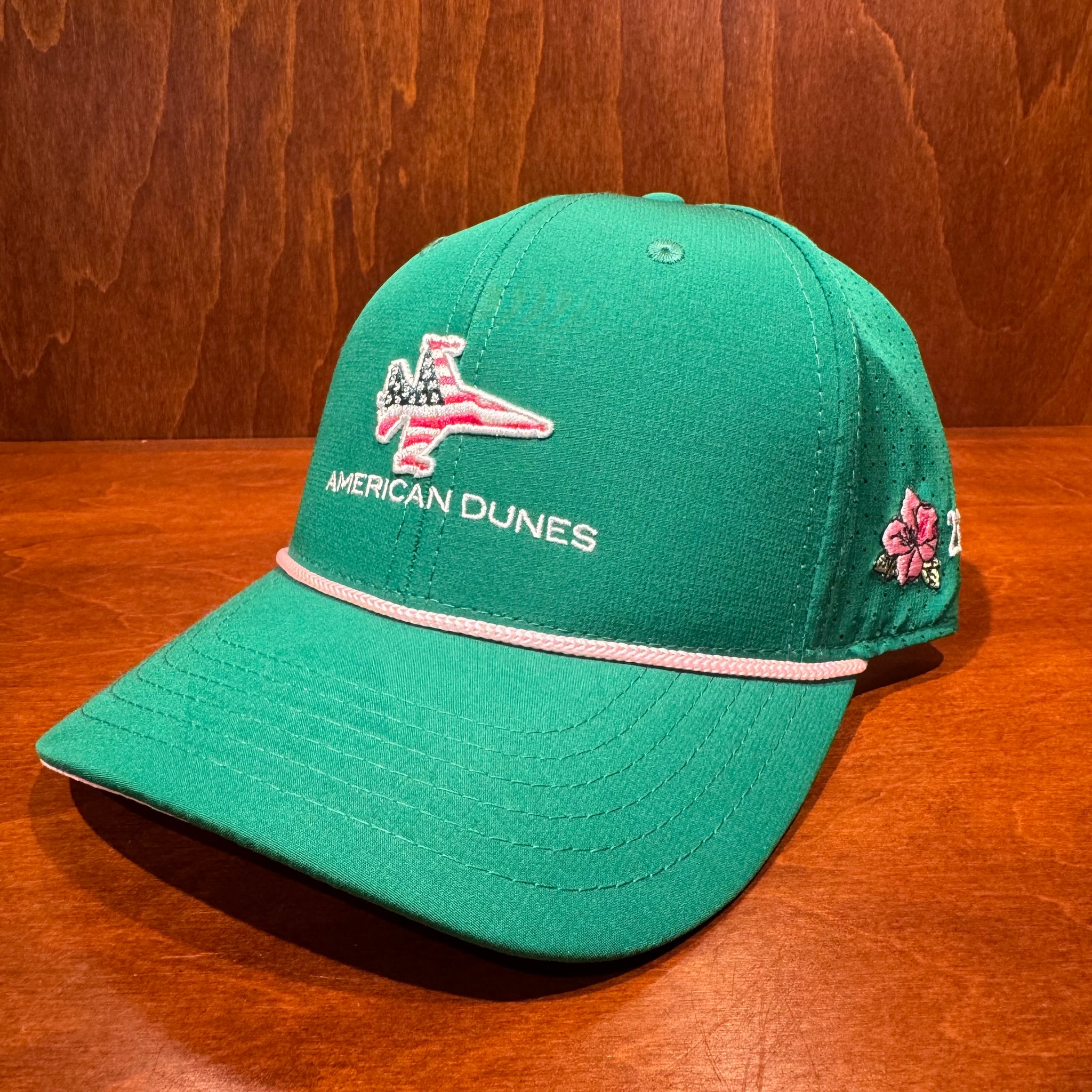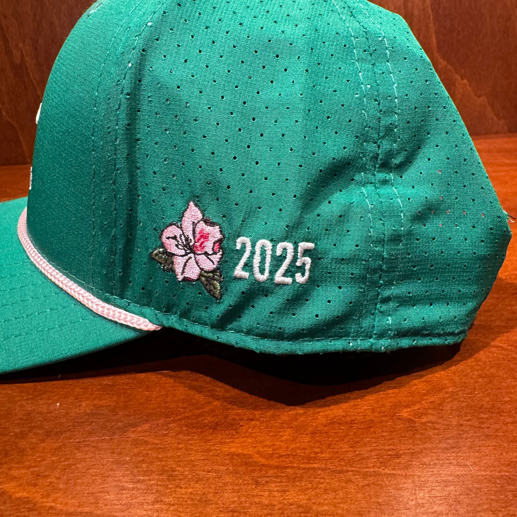 Cap features the special Masters Color Patriot Jet Lockup emblem on the front Folded Flag Icon on the back. Cap also features an Azalea with "2025" on the left side.