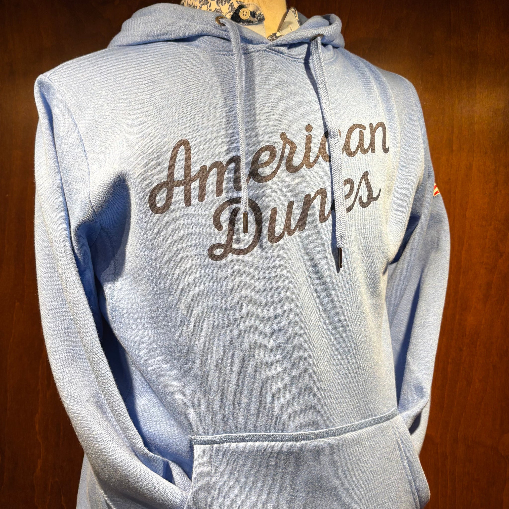 Crafted from ultra-soft, lightweight fleece, this hoodie delivers everyday comfort with all-American style. Featuring a full-chest “American Dunes” script text logo and a Patriot Jet Icon on the left sleeve, this versatile piece blends casual wear with a touch of patriotic pride. Available in multiple sizes and colors.
